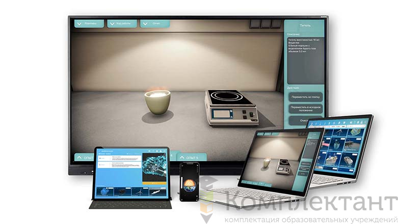 Наглядное 3D пособие ориентировано на школьную программу и может легко запускаться на интерактивных сенсорных панелях. Учебные виртуальные сцены направлены на изучение основных школьных направлении, таких как физика, химия, биология, география, окружающий мир, технологии.