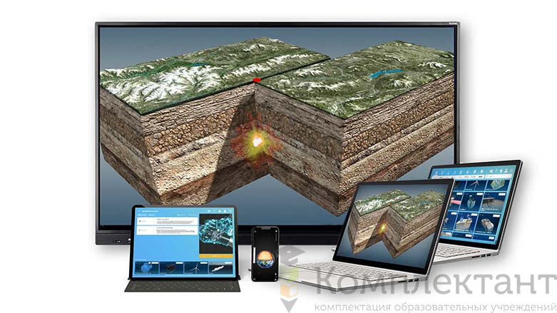 Наглядное 3D пособие ориентировано на школьную программу и может легко запускаться на интерактивных сенсорных панелях. Учебные виртуальные сцены направлены на изучение основных школьных направлении, таких как физика, химия, биология, география, окружающий мир, технологии.