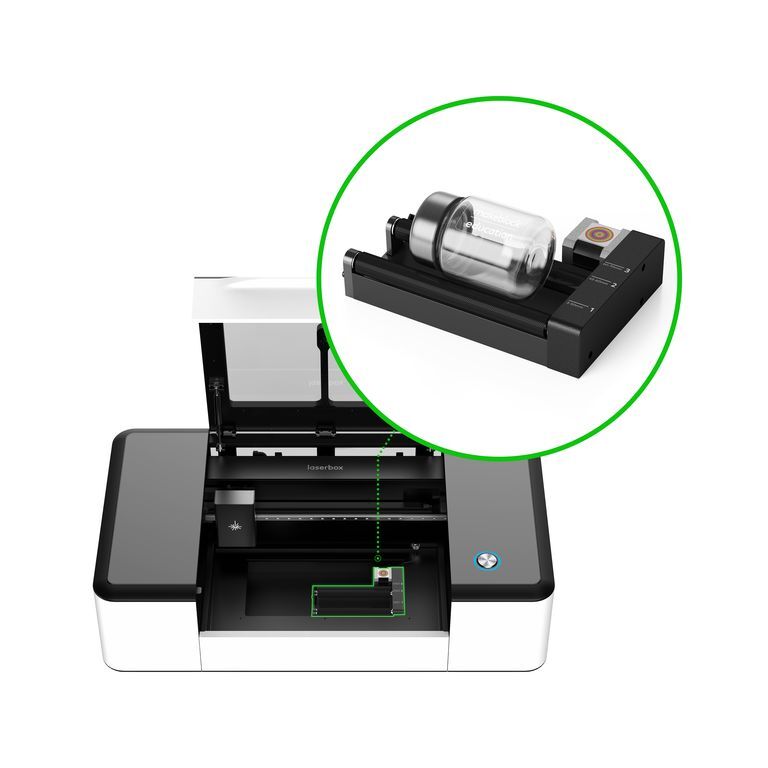 Насадка/приспособление Rotary Roller Engraving Module устанавливается на лазерный гравировщик Makeblock Laserbox Rotary для гравировки цилиндрических материалов диаметром от 3мм до 70 мм. Использование насадки/приспособления с гравировщиком Makeblock Laserbox Pro невозможно.