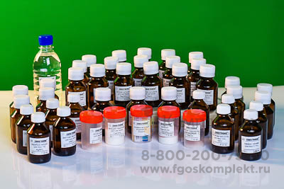 Комплектность: флаконы темного стекла 50 мл с растворами – 8 шт., банки темного стекла 60 мл с сухими реактивами – 32 шт., банки полипропиленовые с сухими реактивами – 2 шт., банка полипропиленовая с универсальным индикатором – 1 шт., бутылки пластиковые (0,33 л) с дистиллированной водой – 1 шт., учебное пособие (40 стр.) - 1 шт., учебное пособие (56 стр.) - 1 шт., руководство по эксплуатации - 1 шт.
