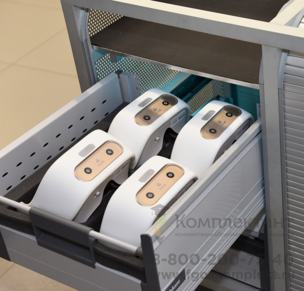 • Система хранения и зарядки оборудования с функцией УФ-обработки на 16 шлемов