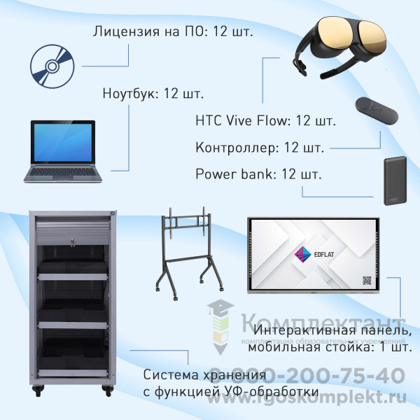 В состав мобильного класса виртуальной реальности EDUBLOCK Flow (VR-12 max) входит: