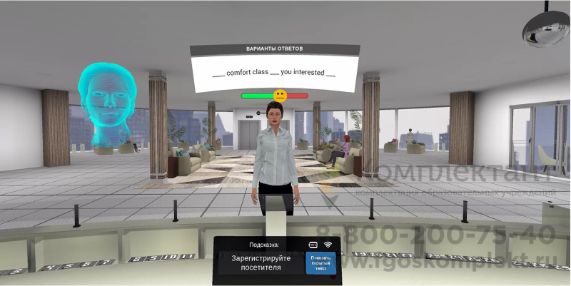 Процесс обучения сопровождается VR-ментором (виртуальный помощник внутри симуляции), который знакомит ученика с заданиями и дает весь необходимый инструктаж.
