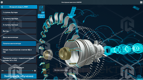 Виртуальный учебный комплекс «Конструкция, оборудование и системы самолета семейства RRJ-95 с авиадвигателем PowerJet S.A. Sam146 и ВСУ Honeywell RE220(RJ)»