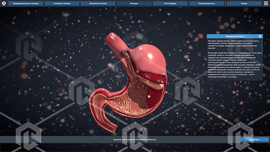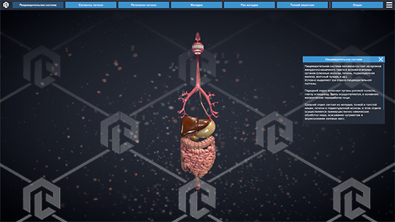 Специализированное программное обеспечение, позволяющее при помощи трехмерной графики и анимации изучить строение пищеварительной системы человека.