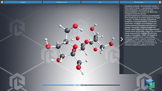 Программное обеспечение позволяет выводить на экран интерактивные трехмерные модели молекул, а также самостоятельно моделировать молекулы органических и неорганических веществ из предоставленного набора атомов химических элементов.