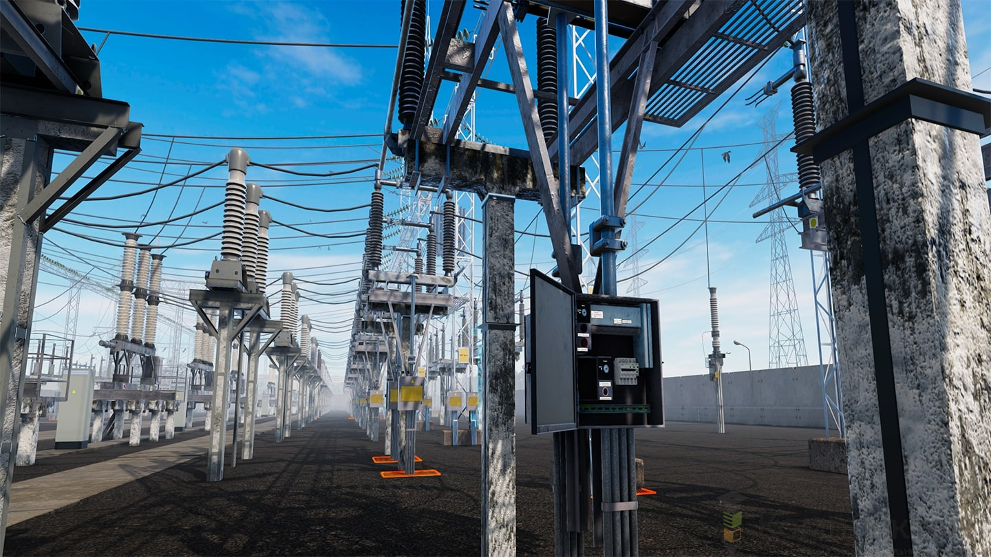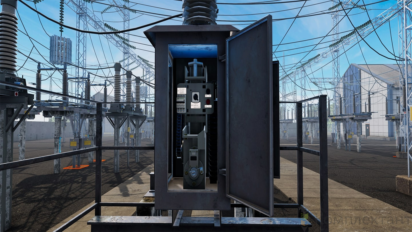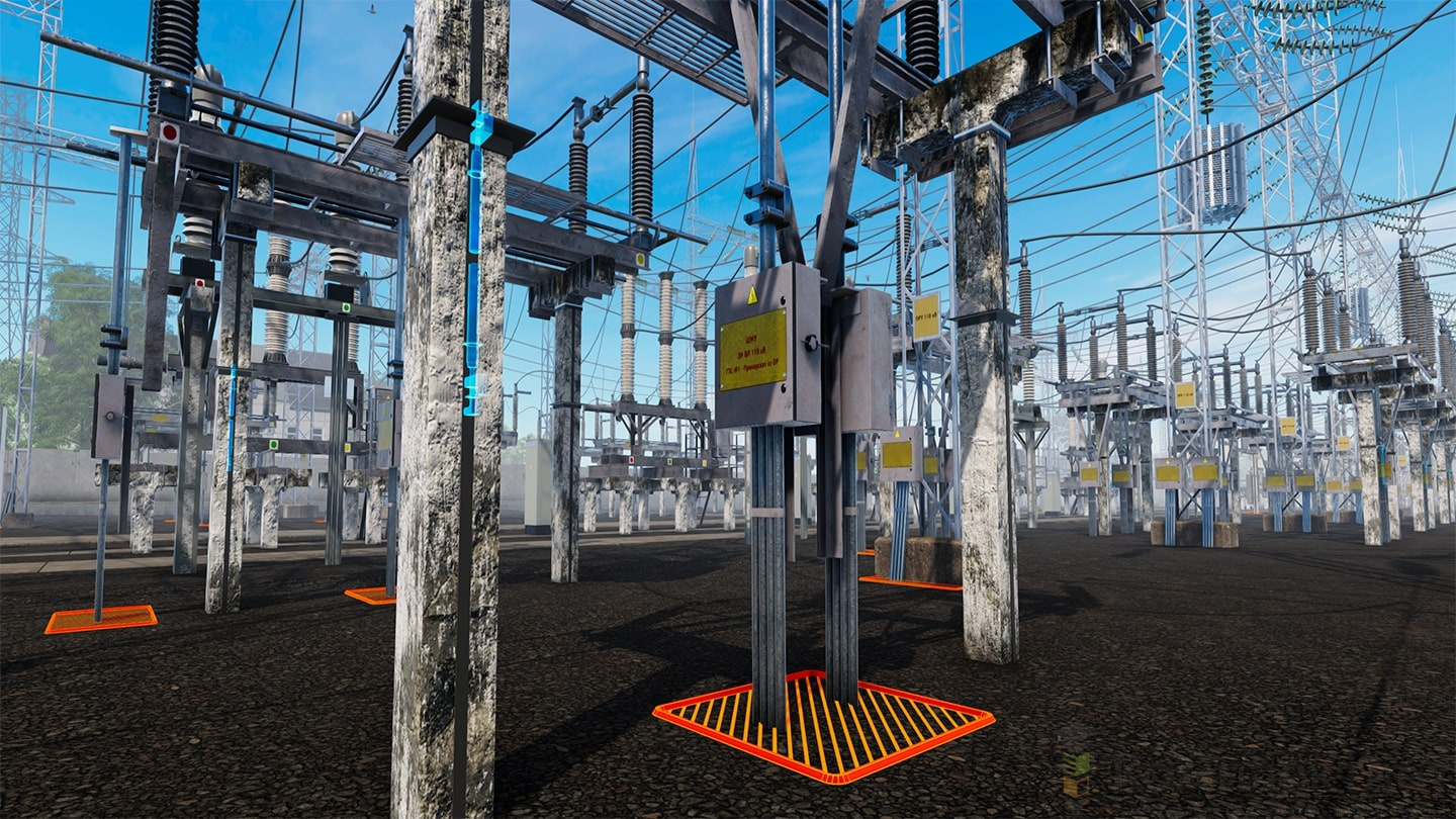 Виртуальный (VR) тренажер «Оперативные переключения в ОРУ 110 кВ» воссоздает цифровую копию открытого распределительного устройства 110 кВ с двумя системами шин с обходной. Тренажер позволяет имитировать переключения в электроустановках в условиях, приближенных к реальным. Возможно прохождение сценариев как в одиночку, так и с напарником. Доступно два режима: тренировка (с подсказками) и экзамен.