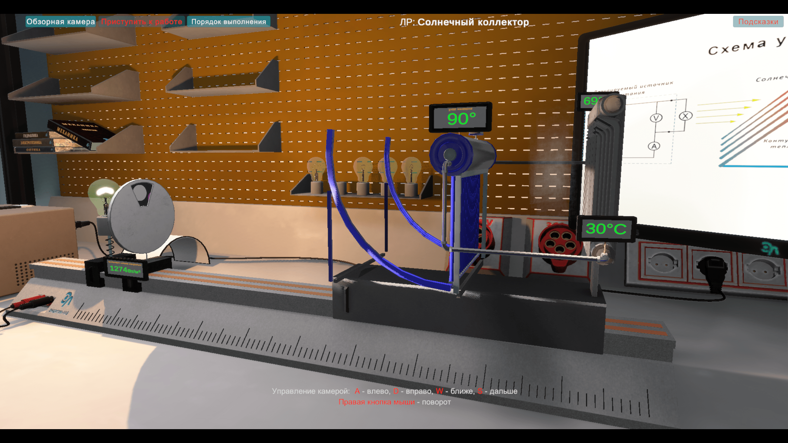 Виртуальная лабораторная работа «Солнечный коллектор» выполняется в программном виртуальном продукте и предназначен для интерактивного выполнения лабораторной работы.