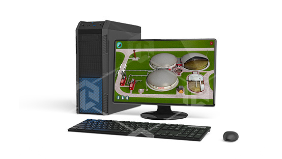 Комплекс позволяет наглядно отображать принцип работы деталей и узлов оборудования, изучать схемотехнику и рабочие процессы, проводить мониторинг состояния во время работы установки получения биогаза.