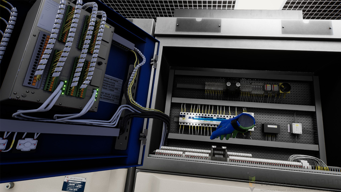 Виртуальный (VR) тренажер «Обслуживание силового трансформатора 110кВ» предназначен для формирования, закрепления (проверки) и поддержания профессиональных умений у работников электросетевых предприятий при выполнении работ согласно типовым технологическим картам, при действии обучаемого одиночно так и в составе ремонтной бригады с использованием виртуальной реальности в многопользовательском режиме, основанных на погружении обучаемого в приближенную к реальной ситуации виртуальную среду, обеспечивающей эффективное использование образной памяти обучаемого.