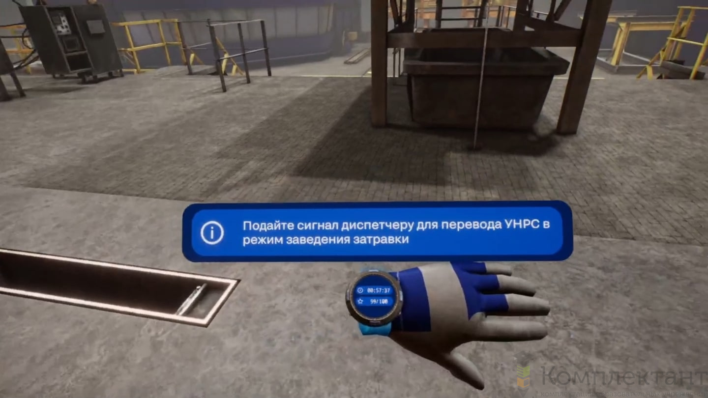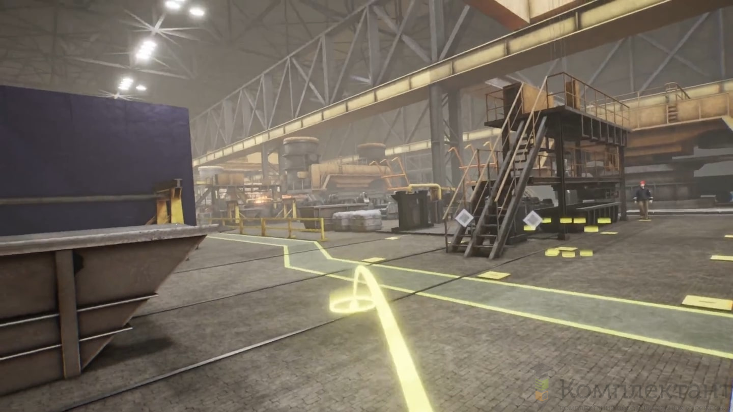 Тренажер Оператор машины непрерывного литья заготовок. Установка непрерывной разливки стали предназначен для повышения уровня профессиональных навыков управления технологическим процессом с одновременной теоретической и практической подготовкой на конкретном рабочем месте операторов МНЛЗ (машины непрерывного литья заготовок). Отработка следующих операций: подача сигнала машинисту крана, перевозка затравки при помощи ГПМ, заведение затравки в кристаллизатор, замена секций. Доступны VR и ПК режимы.