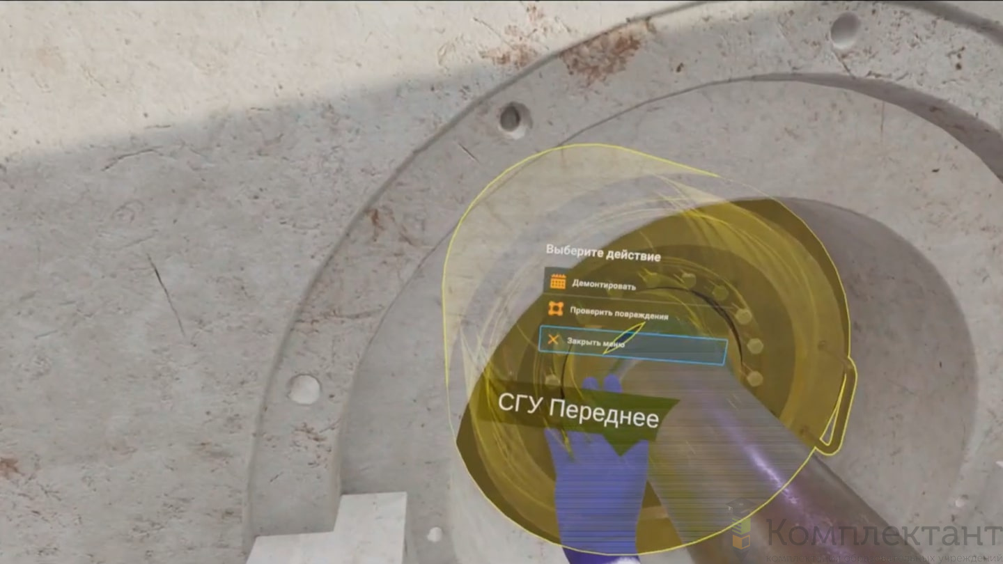 Виртуальный (VR) тренажер «Обслуживание и ремонт торцевого уплотнения нагнетателя природного газа» воссоздает ситуацию, в которой пользователь попадает в блок компрессора газоперекачивающего агрегата (ГПА). Пройдя инструктаж, ему необходимо выбрать подходящие СИЗ. Далее пользователь приобретает навыки регламентной сборки-разборки сухих газодинамических уплотнений (СГУ) внутренних полостей проточной части и ротора ГПА.