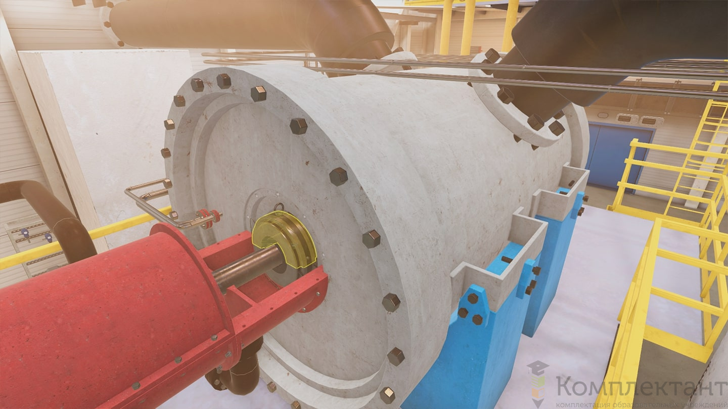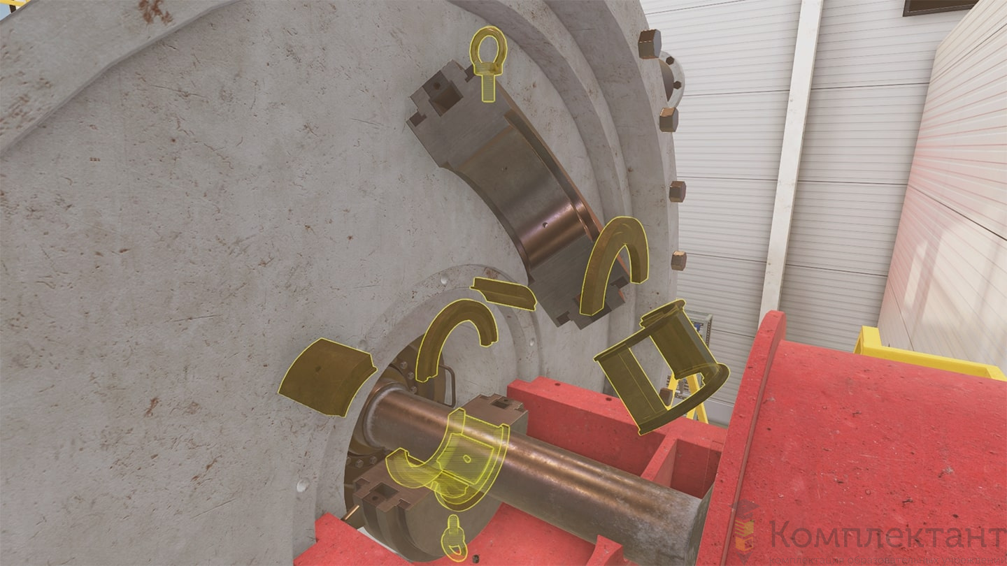 Виртуальный (VR) тренажер «Ревизия и обслуживание подшипника опорного, нагнетателя природного газа» воссоздает ситуацию, в которой пользователь приобретает навыки регламентной сборки-разборки опорного подшипника ротора компрессора в составе газоперекачивающего агрегата (ГПА) для проведения планового обслуживания или ремонта подшипника.