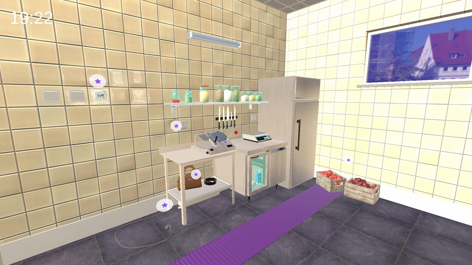 Этап 2. Выявление нарушений на рабочем месте. Пользователь исследует виртуальную кухню и отмечает обнаруженные нарушения техники безопасности и санитарных требований.