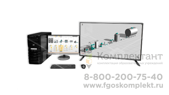 Виртуальный комплекс, в котором реализованы трехмерные модели и пульты управления, являющиеся аналогами реального оборудования цеха по консервированию овощей.