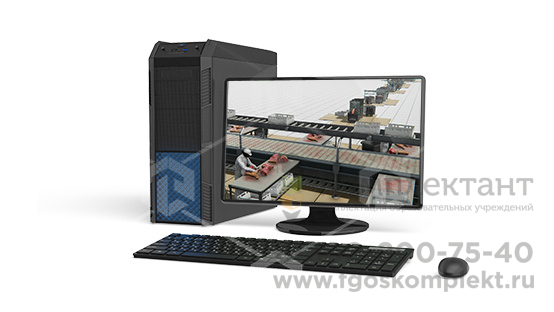Учебный комплекс, в котором реализованы трехмерные модели и пульты управления, являющиеся аналогами реального оборудования по производству мясных продуктов.