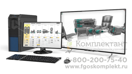 Возможна комплектация с компьютерной программой, в которой реализована трехмерная модель-симулятор.