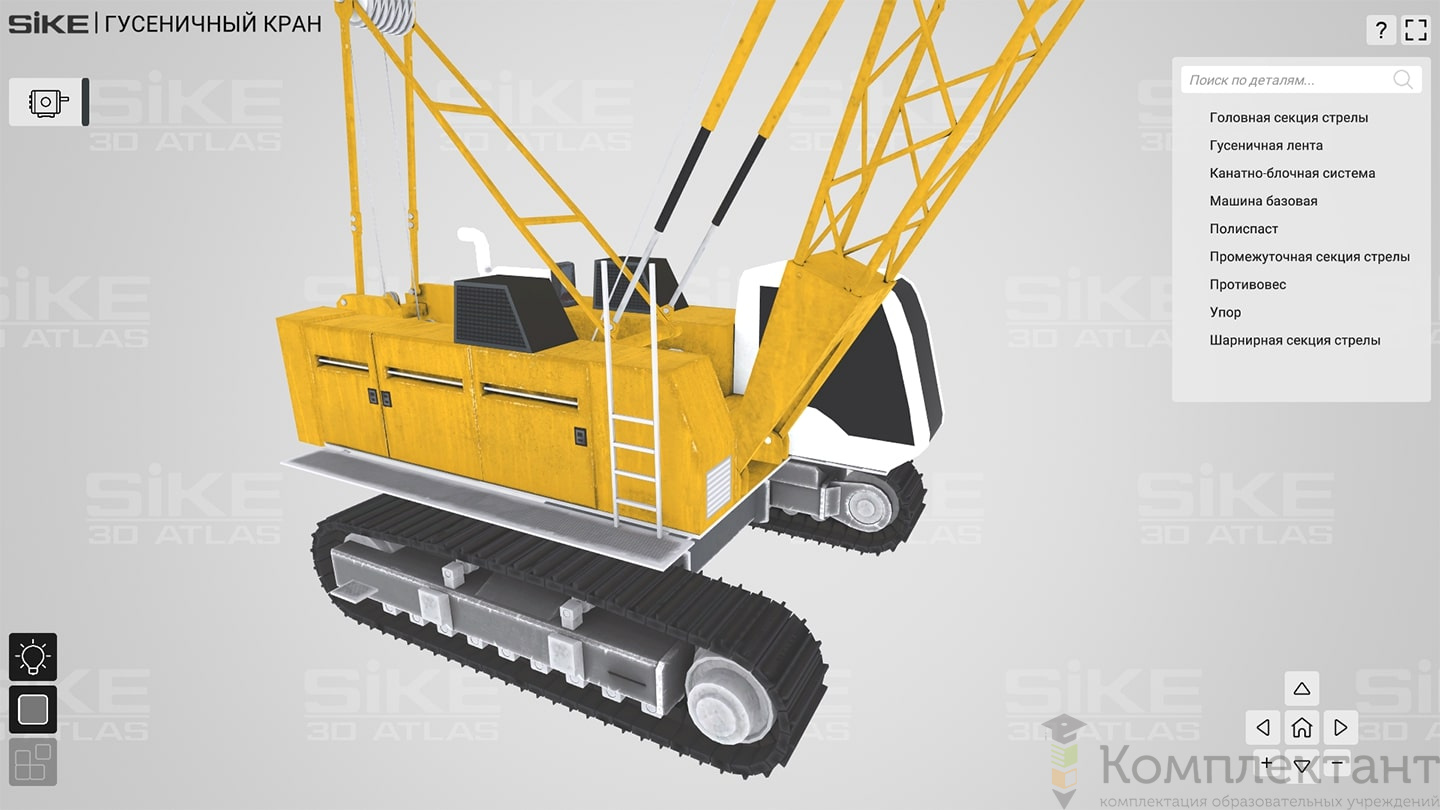 3D Атлас «Устройство грузоподъемных механизмов» дает возможность пользователю детально изучить устройства оборудования на базе реалистичных 3D моделей. В основе изучения интерактивные 3D модели реального производственного оборудования. В режиме «обучение» пользователь может вращать модель, скрывать отдельные детали, изучать внутреннее устройство, описание и назначение деталей. В режиме «тестирование» пользователь может проверить свой уровень знаний по конструкции оборудования.