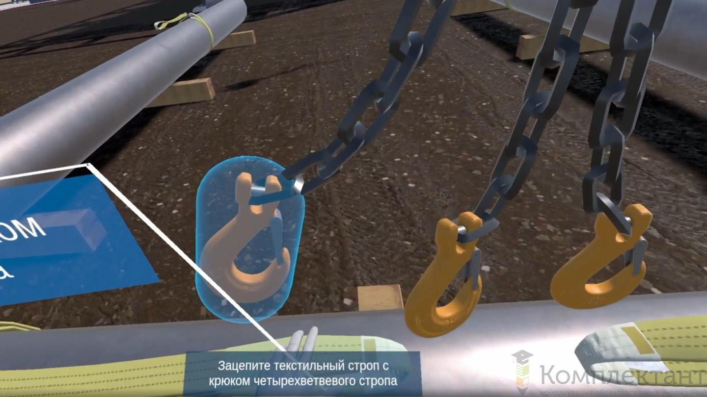 Виртуальный (VR) тренажер «Грузоподъемные работы» обучает безопасным методам подъема и перемещения грузов с использованием грузоподъемного крана. Виртуальная среда позволяет пользователям отрабатывать правильные приемы строповки, координацию с крановщиком и соблюдение техники безопасности при работе в стесненных условиях и на значительной высоте.