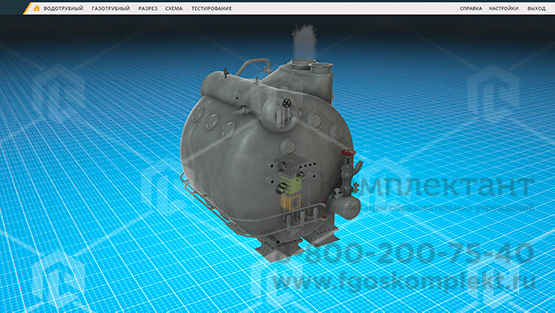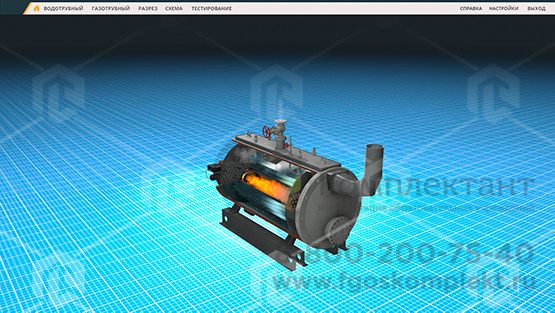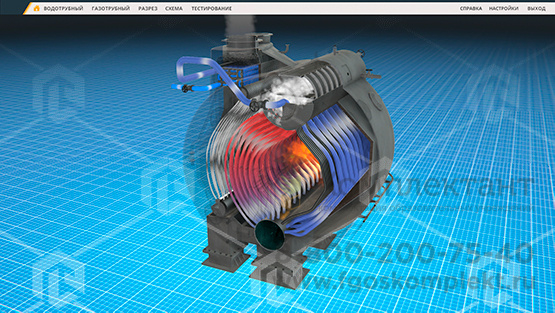 В ПО реализованы виртуальные трехмерные модели систем парового газотрубного котла: